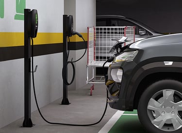 Soluções de recarga para veículos elétricos em diversos ambientes.