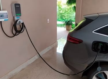 É um equipamento especializado que converte a energia da rede elétrica em energia compatível com a bateria do veículo elétrico. Funciona como um "posto de combustível inteligente", oferecendo: